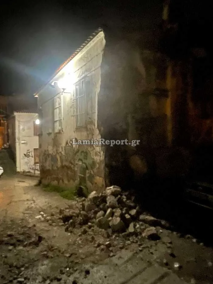Λόγω της κακοκαιρίας στη Λαμία διαβρώθηκε τοίχος παλαιού κτιρίου και κατέρρευσε λίγα εκατοστά μακριά από παρκαρισμένο αυτοκίνητο.